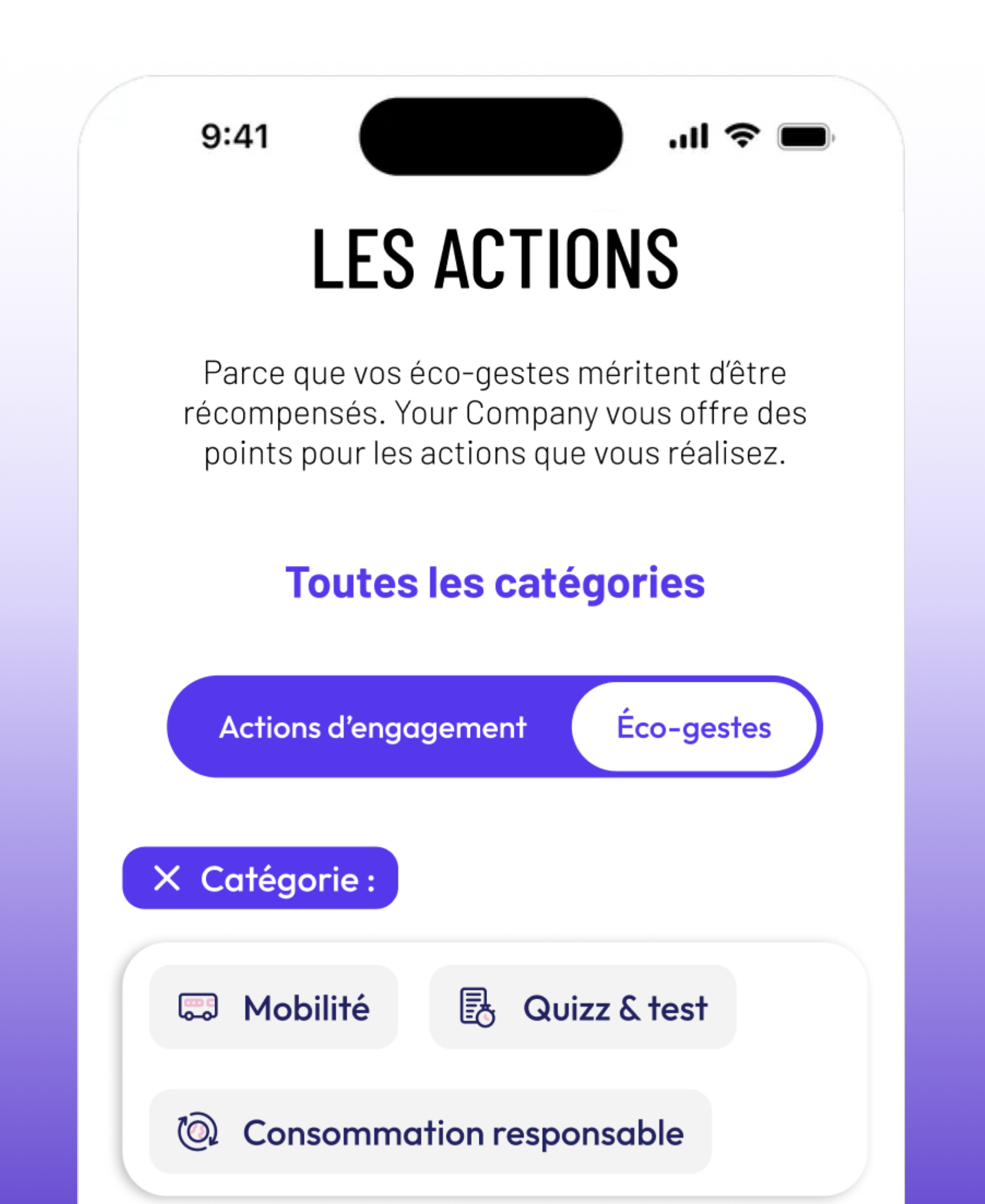 A l’heure de l’éco-responsabilité, Promotiv permet de vérifier la réalisation de nombreux éco-gestes de vos clients, et des les intégrer à vos mécaniques de participation.