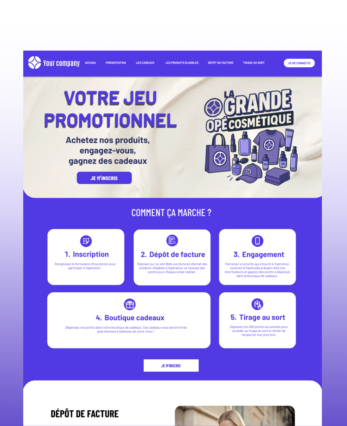 Des template prêts à l’emploi pour toutes les pages du site Web de votre opération promo.